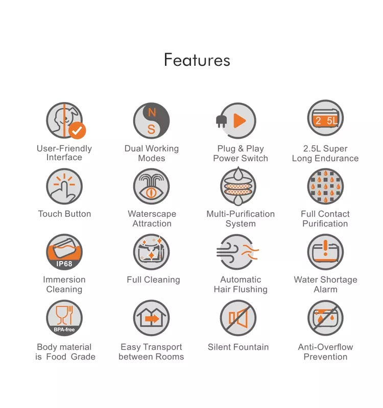 - AUTOMATIC HAIR FLUSHING: Built-in flush mode automatically clears pet hair from the drinking tray for fresh water.